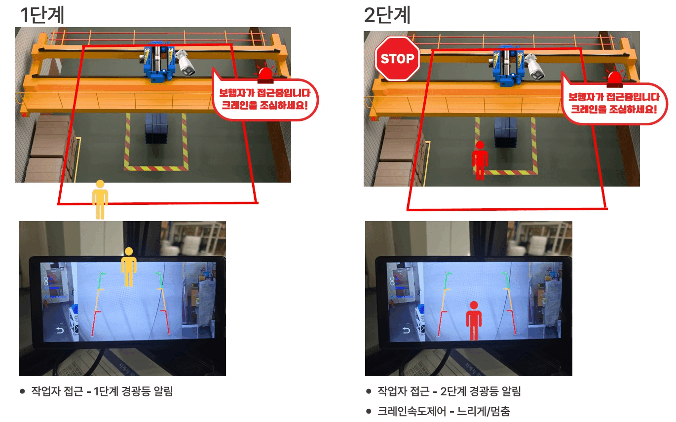 - 작업자가 위험 구역에 접근하면 경보음 등으로 즉시 알림